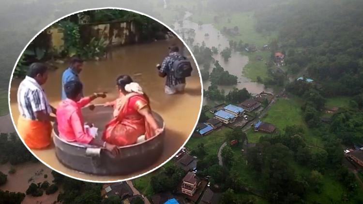 So this couple from Alappuzha district in Kerala used a large cooking vessel to wade through the flood water to get to their wedding venue. Even the wedding venue was flooded, but fortunately they managed to get married without missing the muhurtham time 🙂 pic.twitter.com/mqldzgKIkd