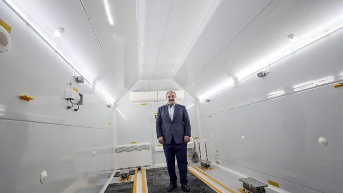 Bu kabiliyeti Türkiye’ye kazandırmaktan şad olduklarını vurgulayan Varank, “Bunun muadillerini 2 katı fiyata lakin alabiliyorduk. Fakat yerli ve ulusal ürettiğimiz için bu türlü sofistike, bu türlü yüksek teknolojili, kendi iklimlendirmesi olan yürüyen bir pak odayı yarı fiyatına ülkemize kazandırmış olduk. Uydumuzu göndereceğiz fakat firmamızın bu alanda memleketler arası arenada pazardan hisse alabilmesi için de takviye olacağız.