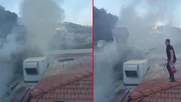 Çatıdan dumanların yükseldiğini gören mekanın çalışanları yangına müdahale etti. Çevrede paniğe neden olan yangın, kısa sürede söndürüldü.