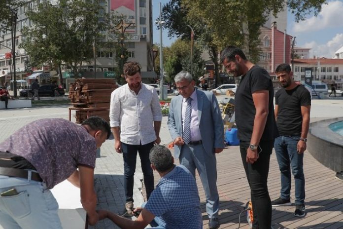KÜTAHYA (İGFA) – Kütahya’nın meydan ihtiyacını karşılayan projede kent mobilyaları için yer çalışmalarını yerinde inceleyen Belediye Başkanı Prof. Dr. Alim Işık, yüklenici firmadan bilgi aldı.