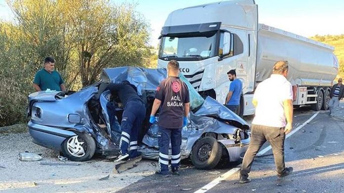 Kaza, saat 06.00 sıralarında Fethiye-Korkuteli yolunun Küçüklü Mahallesi yakınlarında meydana geldi. Fethiye’den Antalya yönüne giden Alper A.’nın (72) kullandığı 48 F 9955 plakalı TIR, karşı yönden gelen S.A. (45) yönetimindeki 43 NN 283 plakalı otomobille çarpıştı.