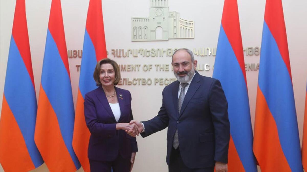 Paşinyan ise, ABD’nin Ermenistan demokrasisi için çaba gösterdiğini ifade ederek, “ABD’den Ermenistan’a yaptığınız bu ziyaretin eşi benzeri görülmemiştir ve bunu takdirle karşılıyoruz. Kişisel çabalarınız, (Sözde) Ermeni Soykırımı’nın ABD tarafından tanınmasına katkılarınız ve heyetinizin çabaları için kişisel olarak size minnettarlığımızı ifade etmek isterim. Bu gerçekle Ermeniler sizi Ermenistan’ın güvenilir bir dostu olarak görüyor. Aynı zamanda ABD’nin Ermeni demokrasisine verdiği desteğe de minnettarlığı ifade etmek istiyorum. Çünkü bu bizim için de çok önemli. ABD’nin ülkemizdeki demokrasi atılımlarını destekleme arzusunu hissediyoruz. Görüldüğü gibi kolay bir yol olmamasına rağmen demokratik reformlar gündemine olan bağlılığımızı ifade etmek isterim. Azerbaycan’ın Ermenistan’a yönelik saldırganlığı konusunda ABD’nin net tutumunu takdir ediyoruz. BM Güvenlik Konseyi’nin mevcut durumun tartışıldığını biliyoruz ve bu durumun BM Güvenlik Konseyi’nin gündeminde kalması gerektiğini umuyoruz. Bu bizim duruşumuzdur ve bu konuda elbette verdikleri destek nedeniyle ABD’ye güveniyoruz” ifadelerini kullandı. Pelosi ve beraberindeki heyetin temaslarını tamamlamasının ardından bu gece Ermenistan’dan ayrılması bekleniyor.