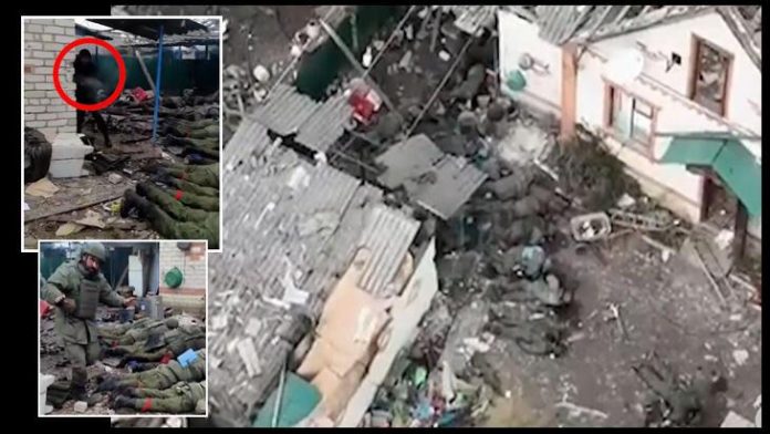 Drone tarafından kaydedilen görüntülerde Rus askerlerin öldüğü görülüyor.