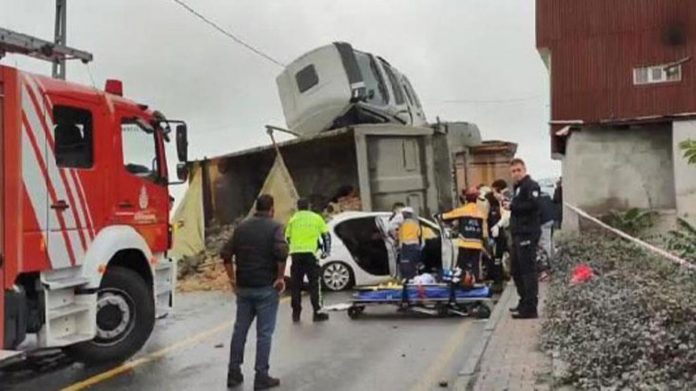 BAŞAKŞEHİR Güvercintepe’de hafriyat kamyonu, otomobilin üstüne devrildi. İhbar üzerine olay yerine çok sayıda ekip sevk edildi. Ekiplerin çalışmaları devam ediyor. Yol trafiğe çift taraflı kapatılırken, itfaiye ekipleri araçta ve hafriyat kamyonunda sıkışanları kurtarma çalışması başlattı.