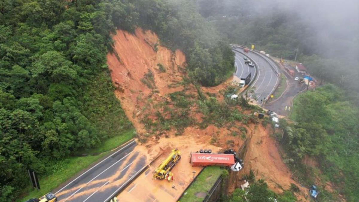 Brezilya’nın güneyindeki Parana eyaletine bağlı Guaratuba’da şiddetli yağış, faciaya yol açtı. BR-376 otoyolunun 200 metrelik bir bölümünde toprak kayması meydana geldi. Faciada 15 civarında araç toprak altında kalırken, en az 2 kişinin hayatını kaybettiği açıklandı.