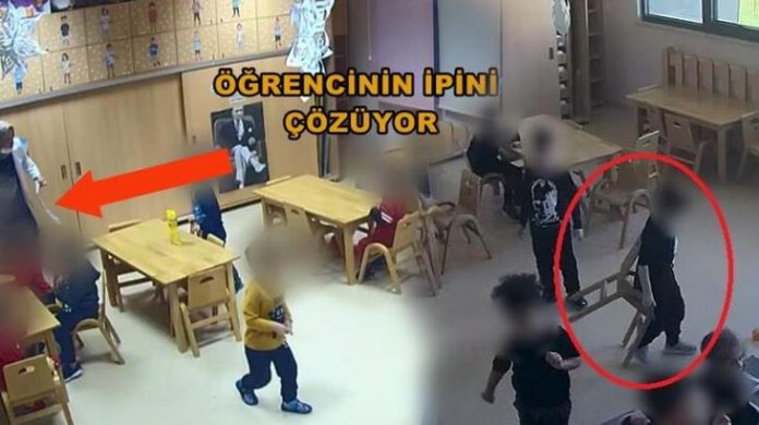 Kameraya yansıyan görüntülerde öğretmenlerin, 10 Kasım’da çocuklarla hazırladıkları Atatürk’ü anma programında çocukların fotoğrafını çekerken, bir taraftan da bağladıkları çocuğun fotoğrafını çekerek anneye atmaları dikkatlerden kaçmadı.