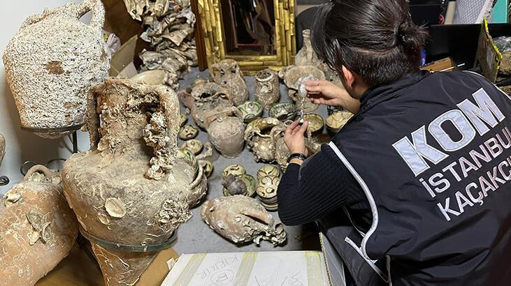 Operasyonda aynı zamanda 29 çeşitli form, ebat ve boyutlarda Yunan, Roma, Bizans, Osmanlı medeniyetlerine ait olduğu değerlendirilen amforalar, 90 adet pişmiş toprak objeler, 1 top mermisi, 1 sedef kakma bağa kaşık, 1 kırık cam şişe, 1 mavi renkli cam şişe, 35 Roma ve İslami dönem sikkeleri, 4 ok ucu bulundu. İş yerindeki hayvan parçaları ile tarihi eserlere el konulurken, gözaltına alınan şüpheli hakkında adli işlem başlatıldı.
