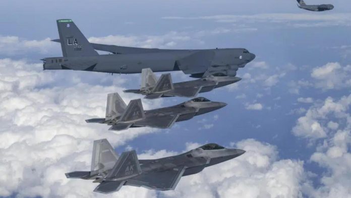 Güney Kore Savunma Bakanlığı, ABD’ye ait B-52 bombardıman uçakları ve F-22 gizli savaş uçaklarının Güney Kore’ye ait savaş uçaklarıyla Jeju adasının güneybatısında ortak tatbikat düzenlediğini duyurdu.