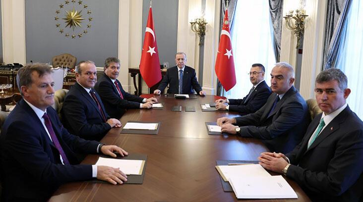 Cumhurbaşkanı Recep Tayyip Erdoğan, KKTC Başbakanı Ünal Üstel’i Cumhurbaşkanlığı Külliyesi’nde kabul etti.