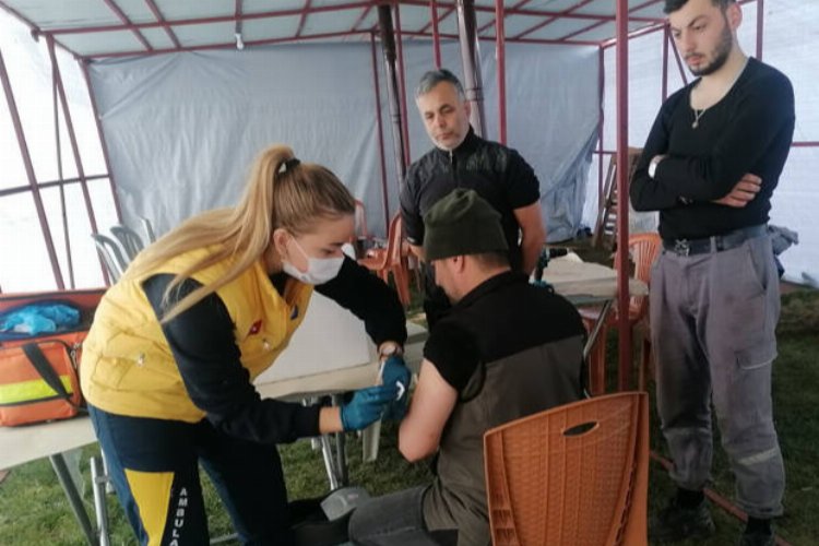 Antalya Büyükşehir Belediyesi’nin diğer bir ekibi de Hatay Orman Bölge Müdürlüğü yerleşkesinde kurulan çadırda aşılama çalışması gerçekleştiriyor. Türkiye genelinden arama kurtarma çalışmalarında görev almak üzere bölgeye gelen ve sahada görev yapan personele tetanoz aşıları yapılıyor. Yaralanmalarda, özellikle toprakla temas açık yara veya paslı metal yaralanmalarında büyük önem taşıyan tetanoz aşısı deprem bölgesindeki çalışmalarda görev alan personel için hayati önem taşıyor.