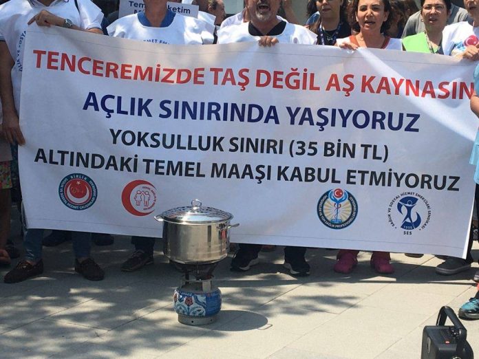 Türkiye İstatistik Kurumu (TÜİK) haziran ayı ve 6 aylık enflasyon verilerini açıkladı. TÜİK’in açıkladığı rakamlara göre enflasyon haziran ayında 3,92, 6 aylık enflasyon ise 19,77 olarak gerçekleşti. TÜİK’in enflasyon açıklamasına göre de AKP Hükümeti memur maaş zamlarına yönelik kanun teklifini, enflasyon farkı yüzde 17,55 ve seyyanen 8 bin 77 lira zam öngörüsüyle TBMM’ye sundu. Bu doğrultuda en düşük memur maaşı 22 Bin TL’ye yükseldi. Kanun teklifi sunulmadan memurlar yurt genelinde TÜİK’in enflasyon rakamlarını protesto etmek için alanlara çıktı. Bugün gerçekleştirilecek 1 günlük iş bırakma eylemine 39 farklı meslekten binlerce sağlık çalışanı katılacak. 3 büyük şehirdeki toplanma alanları şöyle: İstanbul’da Erenköy Ruh ve Sinir Hastalıkları Hastanesi, Ankara’da Ulus Atatürk Anıtı önü ve İzmir’de Atatürk Eğitim Araştırma Hastanesi.
