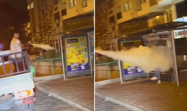 Durakta bekleyen kişiye yangın tüpüyle saldıran kişiler gözaltına alındı!