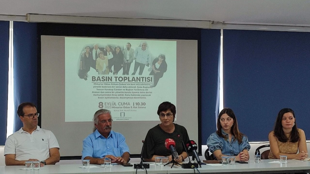 ANKARA – Mimarlar Odası Ankara Şubesi Başkanı Tezcan Karakuş Candan ve Mimarlar Odası Ankara Şube Başkan Yardımcısı Ali Atakan’ın ardından Ankara Şubesi Yönetim Kurulu Üyesi Muteber Osmanpaşaoğlu da memuriyetten ihraç edildi.