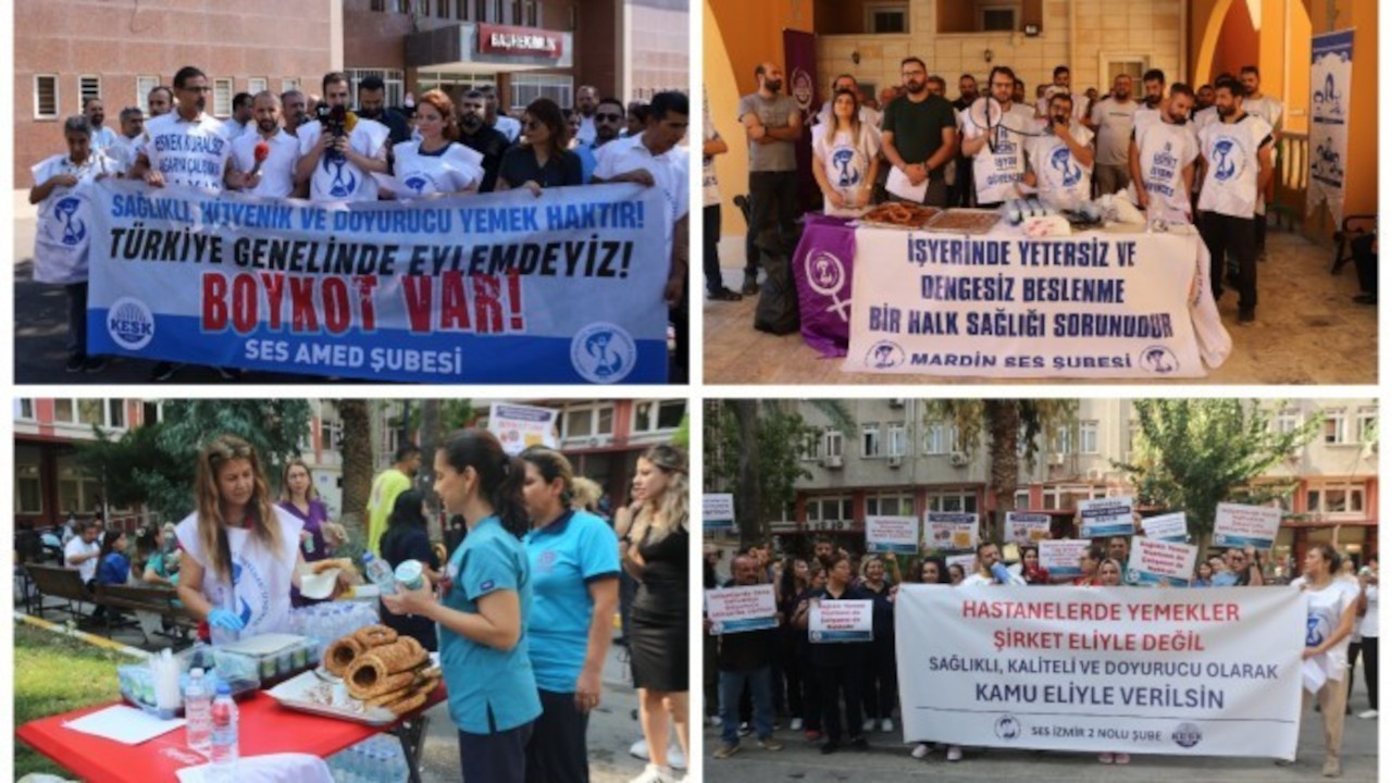 Sağlık ve Sosyal Hizmet Emekçileri Sendikası (SES), sağlık başta olmak üzere kamu kurumlarının yemekhane hizmetlerinde özelleştirilme sonucu kalitenin düşmesini “Sağlıklı, hijyenik ve doyurucu yemek haktır” sloganıyla protesto etti.