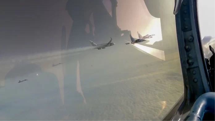 Uçakların şiddetli yağmur ve sert rüzgarların etkili olduğu zorlu hava koşullarında bir havaalanından kalktığı belirtilen açıklamada, savaş uçaklarının birinci sınıf pilotlar tarafından kullanıldığı belirtildi.