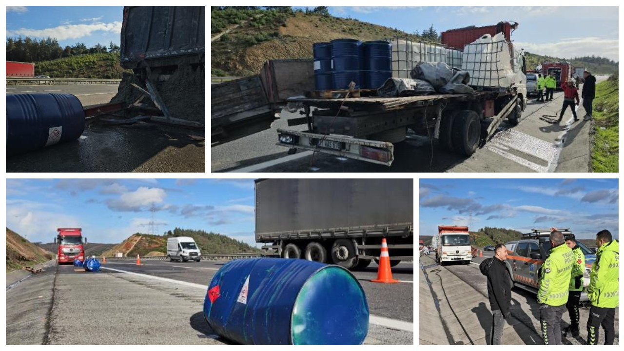 DHA’nın aktardığına göre; varillerden sızan kimyasal madde kazanın meydana geldiği noktadan temizlendi. Kazaya karışan araçlar ise, otoparka çekildi. (HABER MERKEZİ)