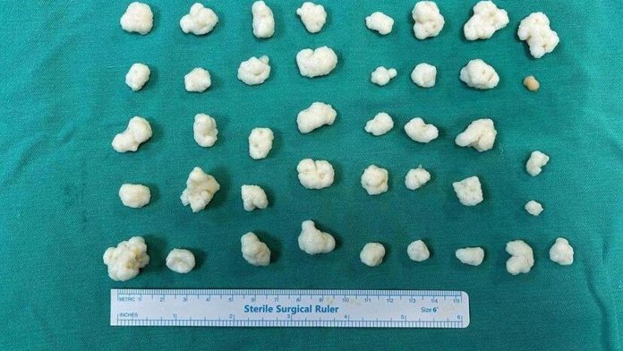 Tetkiklerde, hastanın özellikle diz eklemi çevresinde halk dilinde “eklem faresi” olarak bilinen 41 “multipl sinovial kondromatozisi” tespit edildi.