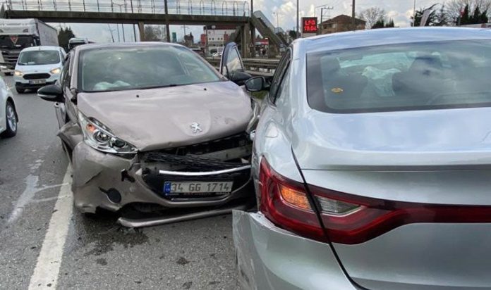Edinilen bilgiye göre, aynı yönde giden yabancı uyruklu A.N.A. idaresindeki 34 DCT 389 plakalı otomobil, B.A. hakimiyetindeki 34 GG 1714 plakalı Peugot marka otomobil ile H.D. hakimiyetindeki 34 CUM 010 plakalı Subaru marka SUV tipi araç zincirleme kazaya karıştı.