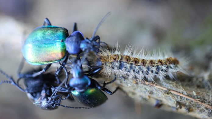 Gaziantep Orman İşletme Müdürlüğü Biyolojik Mücadele Laboratuvarı’nda üretilen 20 bin terminatör böcek (calosoma sycophanta), Kahramanmaraş Orman Bölge Müdürlüğü sorumluluk sahasındaki alana bırakıldı.