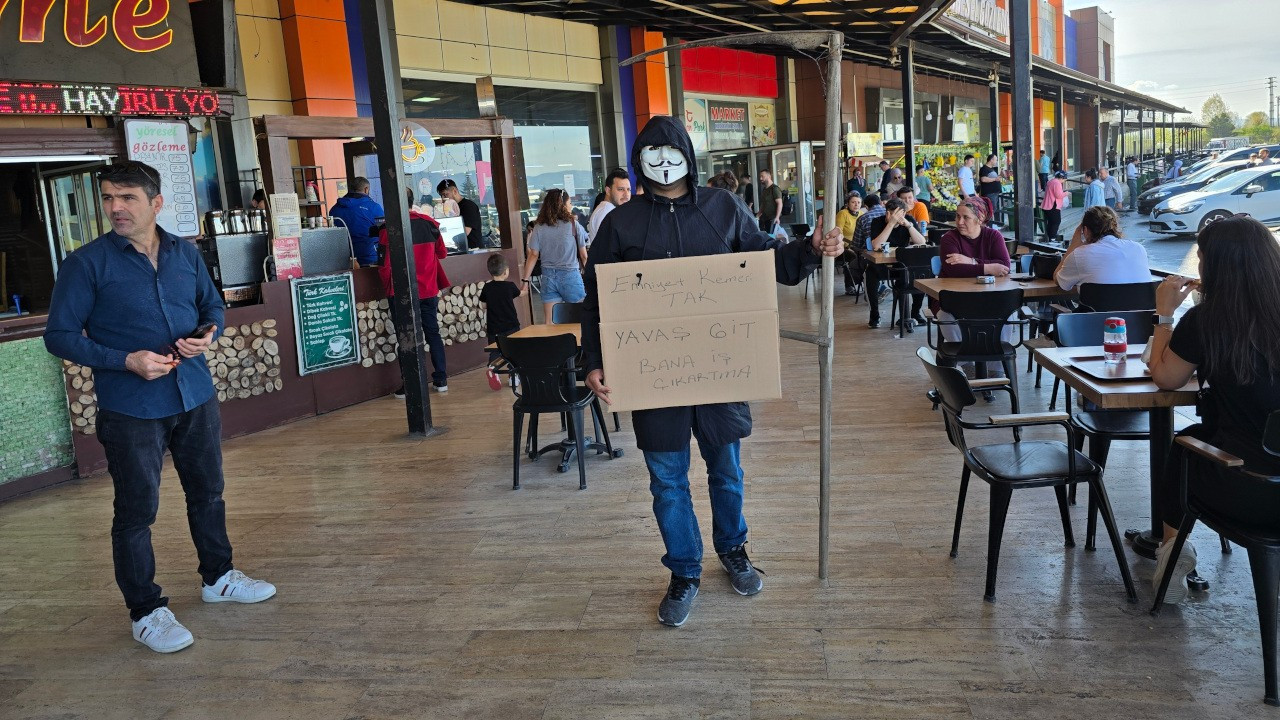 Düzce’de motokuryelik yapan Resul Gür, trafik kazalarına karşı farkındalık oluşması amacıyla Azrail kılığına girdi. Yüzüne maske takıp eline tırpan alan Resul Gür, Anadolu Otoyolu üzerindeki tesislerde dolaştı.