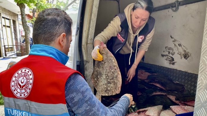 Kaçak yolla avlanan balıkçıklara idari para cezası uygulanırken, kalkan balıklarına ise el konuldu.
