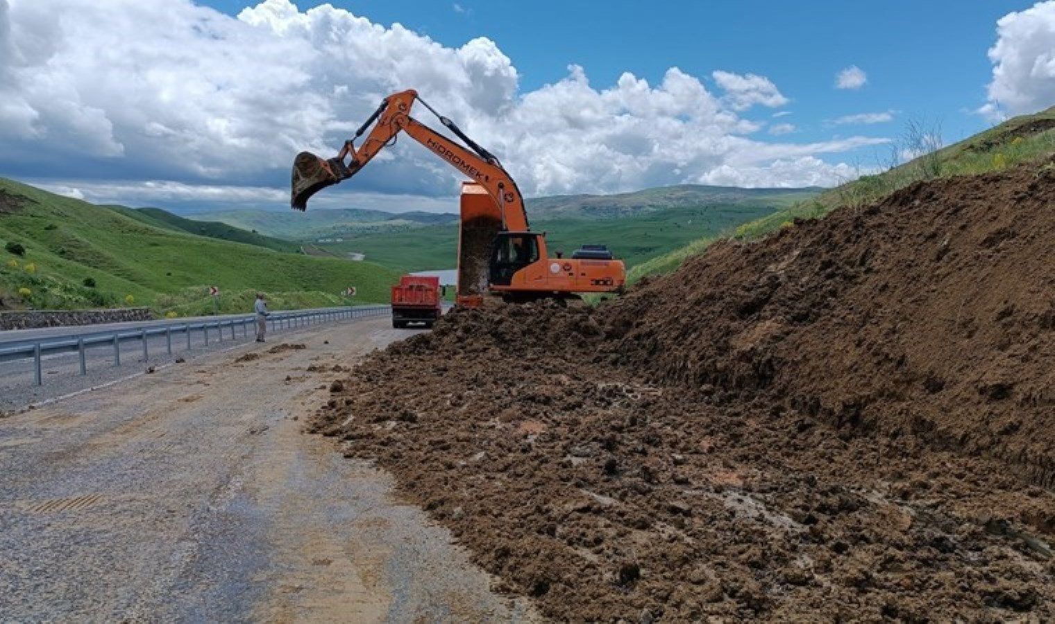 Heyelandan dolayı olumsuz bir durum yaşanmazken Karayolları 113. Muş Şube Şefliği ekipleri bölgede toprak kaldırma çalışması başlattı.