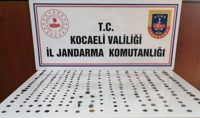 Otomobildeki aramada tarihi eser olduğu değerlendirilen 252 sikke, 5 yüzük, 1 mühür ve 2 kolye ucu ele geçirildi.