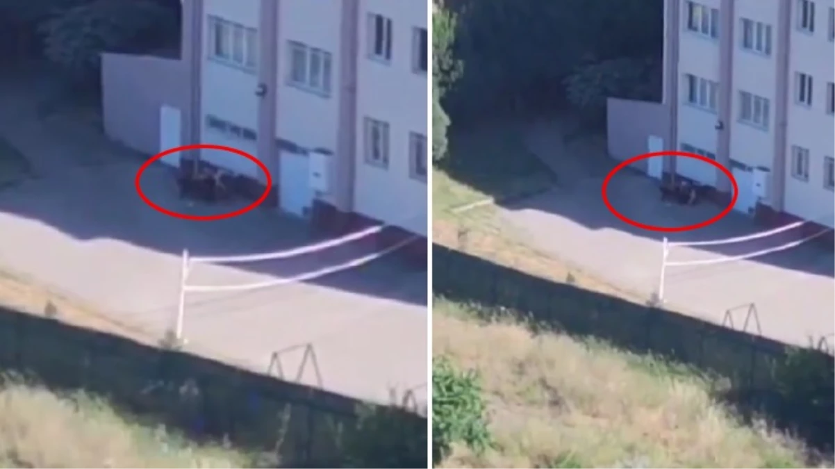 Kentsel dönüşüm konutlarının yakınında bulunan bir lisenin arka bahçesinde cinsel ilişkiye giren 2 kişiyi kameraya alan işçiler telefonlarıyla “zoom” yapamamaktan yakındı.