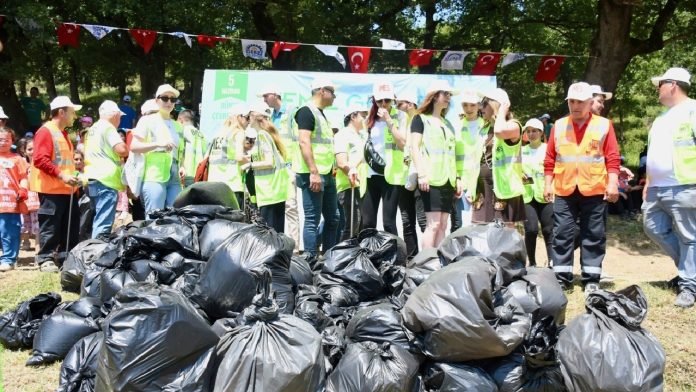 Kocaeli’nin Gebze ilçesindeki göletin çevresinde öğrenci, öğretmen, organize sanayi bölgelerinin (OSB) çalışanları ve kamu personeli yüzlerce kişinin katıldığı temizlikte 1 ton atık toplandı.