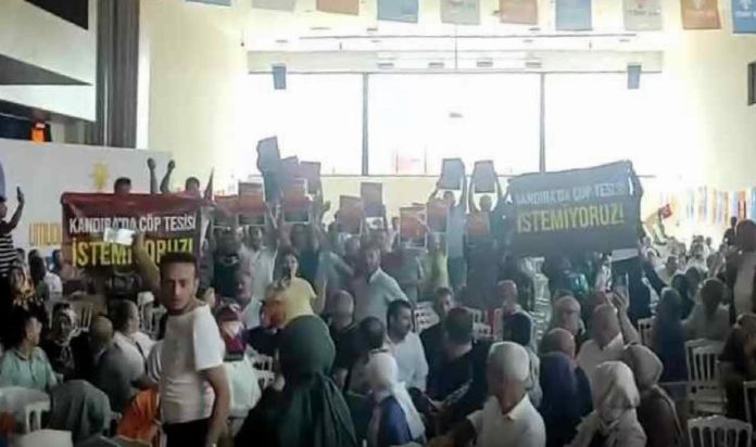 Kocaeli’nin Kandıra ilçesi Akçakese Mahallesi’ne yapılmak istenen atık tesisi, mahalle sakinleri tarafından Etraf Şehircilik ve İklim Değişikliği Bakanı Murat Kurum ve AKP yöneticilerinin katıldığı AKP Kocaeli Vilayet Müşavere Meclisi toplantısında protesto edildi. Mahalle sakinleri, Bakan Kurum’un konuşması sırasında dövizler açarak “Kandıra’ya çöp istemiyoruz” sloganları attı.
