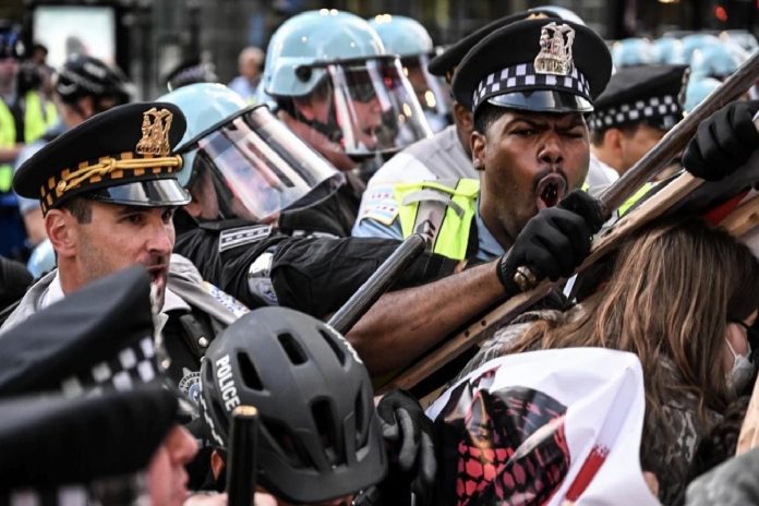 ABD’de Demokrat Parti Kongresinin gerçekleştirildiği Chicago kentinde Gazze’deki katliamlarına tepki göstermek için İsrail konsolosluğu önünde toplanan gruba polis müdahale etti.