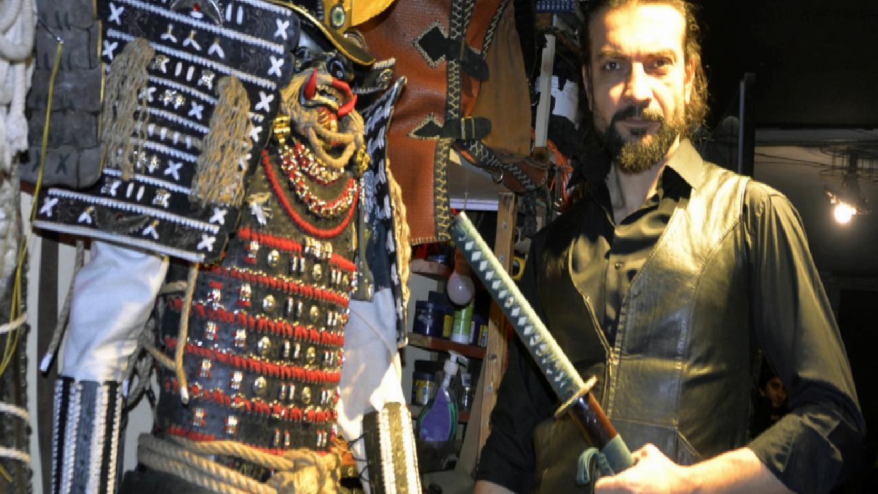 Kurduğu 16 metrelik atölyesinde farklı medeniyetlere ait sayısız savaş aleti de üreten Erbatan, son olarak geleneksel samuray zırhı yaptı.