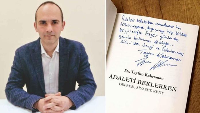 İstanbul Silivri’de Marmara Kapalı Cezaevi’nde bulunan Gezi Parkı davası hükümlüsü Tayfun Kahraman, CHP Genel Başkanı Özgür Özel’e, Ekrem İmamoğlu’nun ön sözüyle yayımlanan, “Adaleti Beklerken: Deprem, Siyaset, Kent” isimli kitabını imzalayarak gönderdi.