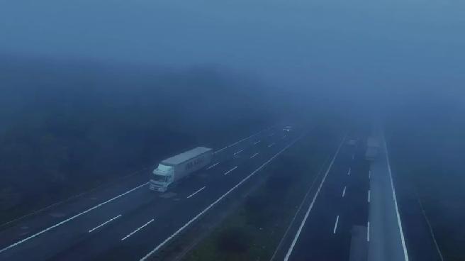 Sis tabakasının kapladığı ova ile sisin etkili olduğu otoyoldaki trafik akışı, havadan görüntülendi.