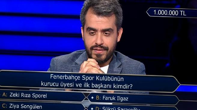1 milyonluk sorunun doğru cevabı ise “C şıkkı” Ziya Songülen oldu. Nurizade Ziya Songülen, Fenerbahçe Spor Kulübünü kuran üç kişiden biridir. Ziya Songülen, kulübün ilk başkanı ve 1 numaralı üyesidir.