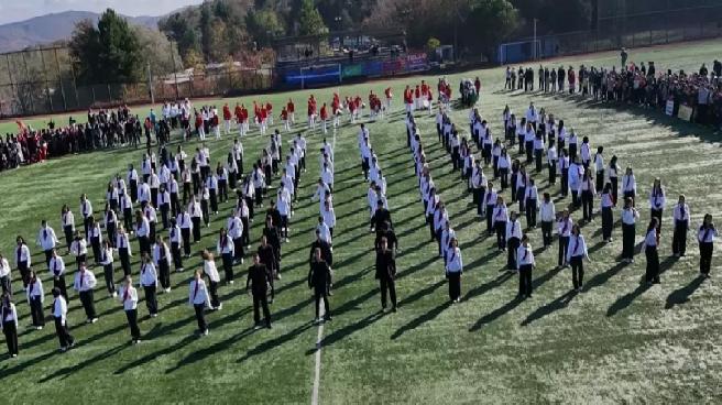 Programda 160 kişilik zeybek gösterisi vatandaşlar tarafından ilgiyle izlenirken, Kaymakam Muhammed Kaya ve Belediye Başkanı Mehmet Ata, ilçe protokolüyle geçit yapan okulları selamladı.