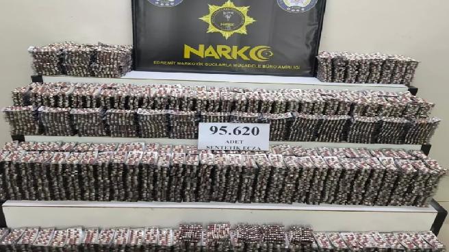 Balıkesir’in Burhaniye ilçesinde düzenlenen operasyonda 95 bin 620 uyuşturucu hap ele geçirildi, gözaltına alınan 1 şüpheli tutuklandı.