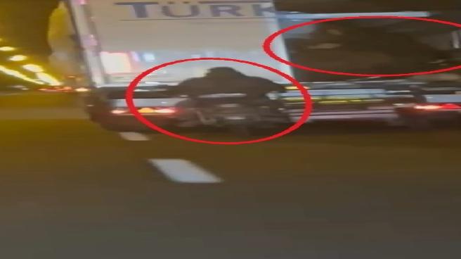 Olay, 30 Ekim’de saat 23.30 sıralarında Diyarbakır-Şanlıurfa kara yolunda meydana geldi. Seyir halindeki koyun yüklü TIR’a sepetli motosikletle yaklaşan 2 kişi, dorsenin arka kapısını açtı. Şüphelilerden biri koyunları dorseden alıp, aynı hızda ilerleyen motosikletin sepetine attı. Olay anı, yolda başka araçtaki kişi tarafından cep telefonu kamerasıyla kaydedildi.