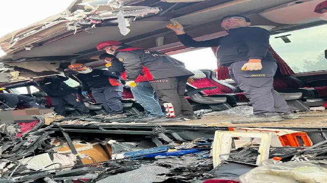 Hayatını kaybedenlerin kimlik tespit çalışmalarının sürdüğü anlatılan açıklamada yolun trafiğe kapatıldığı kaydedildi.
