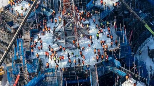 HARBİN, 6 Aralık (Xinhua) — Çin’in Harbin kentinde düzenlenen 27. Buz ve Kar Dünyası için hazırlıklar tüm hızıyla sürüyor. Çalışmalarda 10.000’den fazla işçi ve yaklaşık 1.000 makine görev alıyor. Festival alanının, önceki tüm edisyonların en büyüğü olacak şekilde 1,2 milyon metrekareye çıkarılması planlanıyor.