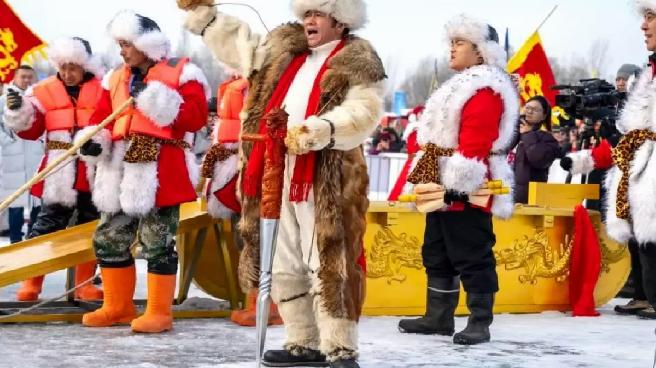 HARBİN, 8 Aralık (Xinhua) — Çin’in Harbin kentinin buz toplama sezonunun başlangıcını simgeleyen 6. Buz Toplama Festivali, pazar günü Songhua Nehri kıyısında başladı. Buz toplama töreni ve geleneksel etkinlikler yapılan festival, çok sayıda kişinin de ilgisini topladı.