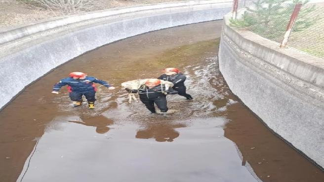 Gökçebayır Mahallesi’ndeki su kanalına karacanın düştüğünü fark eden vatandaşlar, durumu itfaiye ekiplerine bildirdi.